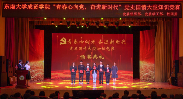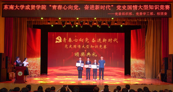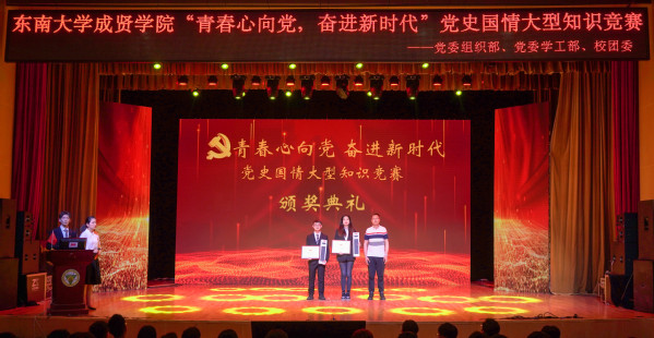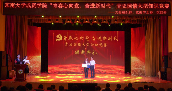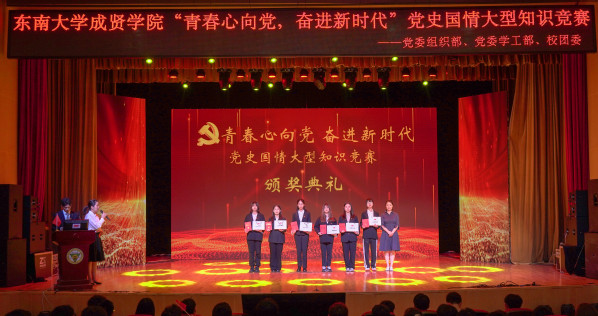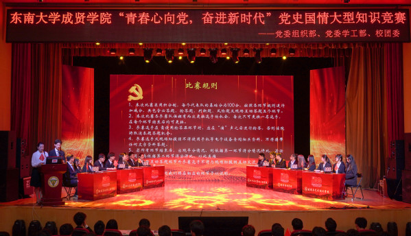 为庆祝中国共产党成立100周年,深入贯彻习近平总书记在党史教育动员大会上的重要讲话精神,落实学校党委日本中文av党史学习教育的决策部署,5月9日晚,由学校党委组织部、党委学工部、校团委联合主办,校学生会学习部承办的“青春心向党,奋进新时代”党史国情知识竞赛在综合楼报告厅举行。党委学工部部长、学生处处长施杰,校团委书记、人武部部长潘明烽,机械与电气工程学院综合办主任李洪全,制药与化学工程学院综合办主任刘静,学院部分分团委书记、辅导员老师与近600名学生代表共同参加了比赛。