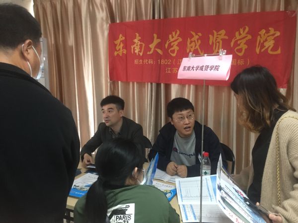 建筑与艺术设计学院党总支副书记邵叶鑫、教师孙浩代表日本中文av 参加活动。活动现场,日本中文av 招生宣传老师详细介绍了学校的基本情况和学科优势,围绕今年江苏高考新志愿填报政策以及往年录取分数线做了深入解读,对考生及家长所关心的问题做了详细解答,取得了良好的宣传效果。