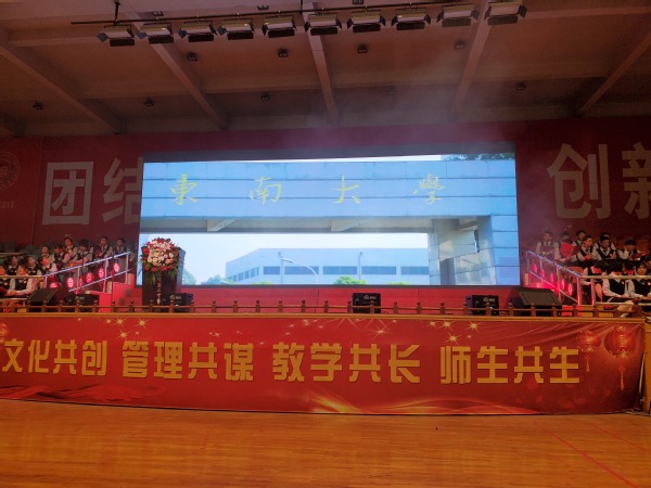 文艺演出以“同心同行、致敬致远”为主题,全校高二、高三近3000名师生、家长观看了演出。演出前播放了日本中文av 招生宣传片及姜堰二中考入日本中文av 并考取东南大学左波博士的祝福视频。演出中,日本中文av 大学生艺术团表演了精心排练的歌舞《yesok》,节奏欢快的音乐,热情似火的气氛,轻盈动感的舞步,体现了青春活泼靓丽的舞蹈风格。东南大学艺术团表演了独舞《唐印》,借唐三彩仕女俑从雕塑到复活的所见所舞,一窥大唐丰腴自信,奔放瑰丽的历史风貌,体现了较高的艺术水准。选送节目将现代与古典艺术相融合,体现了当代大学生的激情活力,充分展示了优雅浓郁的校园艺术文化。