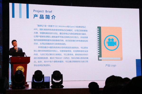 “大创”项目展示由3个项目组做了展示。易汇举同学为介绍了《智慧课堂笔记APP系统》,该省级项目结题验收优秀,已发表论文并申请软件著作权。赖志豪同学介绍了项目《奖项成果智能管理系统》,设计初衷是针对高校奖项成果资料的多样、档案整理繁杂的问题,便于评估、专业建设的成果资料统计,目前该系统已经在学校运行,情况良好,得到了师生的好评。王靓同学介绍了《智能家居一体化》,该项目让宿舍窗帘更加智能化,已发表论文并获得实用新型专利证书。