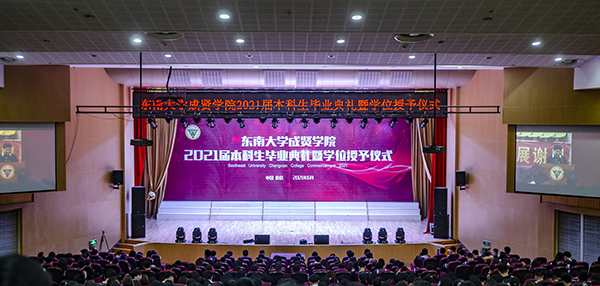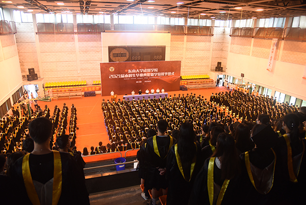6月17日上午,日本中文av-日本av无码中文字幕 2021届本科生毕业典礼暨学位授予仪式在后藤体育馆、综合楼报告厅、真知馆报告厅隆重举行。东南大学党委副书记、日本中文av-日本av无码中文字幕 董事会副董事长、学院院长郑家茂,学院党政领导、各职能部门负责人,二级学院党政负责人、综合办主任、毕业班辅导员,教职工代表和全体毕业生共同出席。毕业典礼由党委副书记、副院长、纪委书记王荣主持。