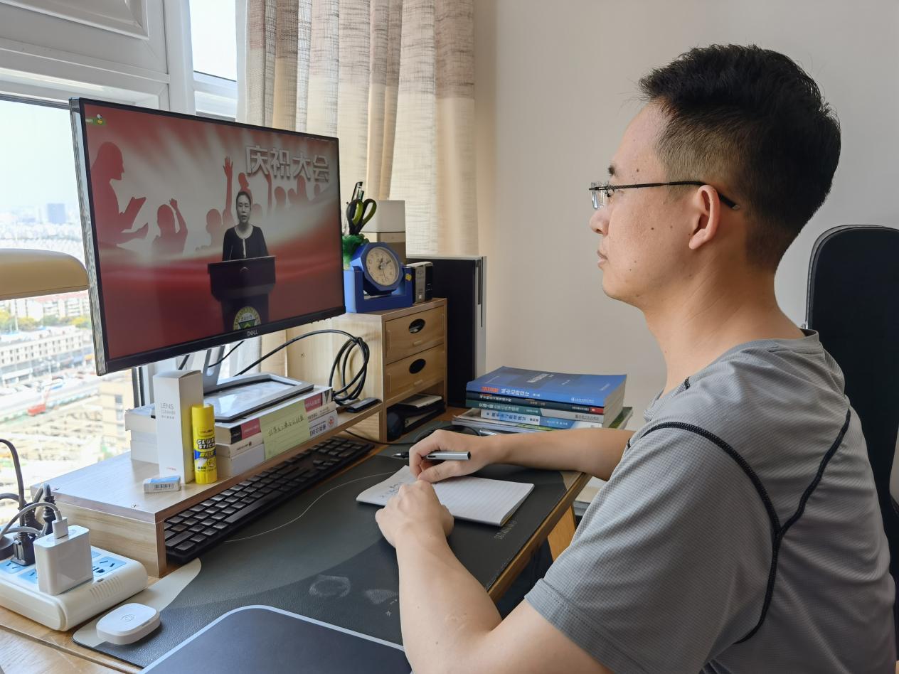 常务副院长许映秋首先致辞。她在讲话中代表学校党政向奋战在线上、线下开展教学、管理工作的全体教职员工致以崇高的敬意与衷心的感谢。同时,她希望全体教职工不忘初心,厚植爱国情怀;立德树人,勇担育人使命;创新学习,与学院发展同向同行。