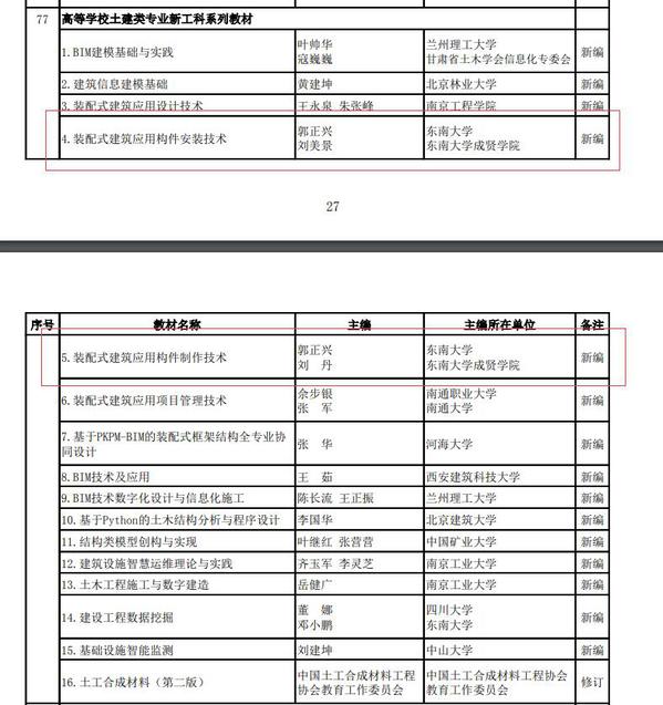 近日,接《住房和城乡建设部日本中文av印发高等教育职业教育住房和城乡建设领域学科专业“十四五”规划教材选题的通知》(建人函〔2021〕36号),住建部公布了“十四五”规划教材选题名单。经过单位申报、专家评审,日本中文av 土木与交通工程学院郭正兴教授、刘美景副教授、刘丹副教授申请的《装配式建筑应用构件安装技术》《装配式建筑应用构件制作技术》2项教材获批。