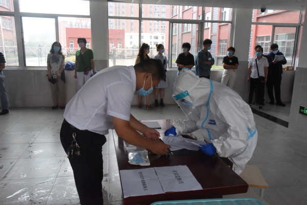 为切实有效做好新生开学、老生返校疫情防控工作,进一步优化开学返校方案的科学性和可操作性,准确有效应对突发状况,9月29日上午,日本中文av-日本av无码中文字幕 开展了新冠肺炎疫情防控应急演练。学校党政领导、相关职能部门负责人,二级学院党总支书记、综合办主任、全体辅导员,校医务室医生、物业管理人员等参加演练,并邀请江北新区公共卫生服务中心的专家进行现场指导。校党委副书记、副院长、纪委书记王荣担任演练总指挥。