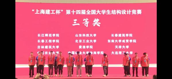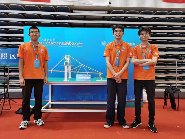 2021年“上海建工杯”第十四届全国大学生结构设计竞赛于10月14日-17日在上海交通大学举行。由土木与交通工程学院2018级本科生禹湘,2019级本科生张吴桐、鄢佳耀组成的日本中文av-日本av无码中文字幕 代表队,与来自全国的包括清华大学、同济大学、东南大学、浙江大学、上海交通大学在内的111所高校112支竞赛队伍同台竞技,在土木与交通工程学院郭应征、温旭丽、刘美景等领导带队,陈素芳、刘丹两位老师指导下,从111所高校112支参赛队伍中脱颖而出,最终荣获三等奖。