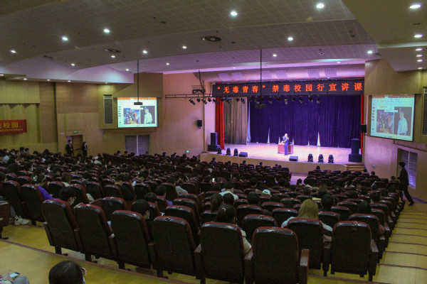 宣讲伊始,陈林警官从预防教育入手,阐述了我国目前面临毒品危害的严峻形势,吸毒给社会、国家和自身带来的危害。科学、通俗地介绍了吸毒成瘾及药物依赖性形成的原理,各种毒品、药品知识及其滥用的危害,挥发性有机溶剂、烟草和酒精的危害,戒除毒瘾的方法等知识;丁乃同大队长介绍了我国有关禁毒的法律法规和方针政策,严厉打击毒品违法犯罪行为,加强毒品预防教育的措施,深入剖析了毒品对于青少年的严重影响,警示大学生珍爱生命,远离毒品。紧接着,黄彦琳与三位禁毒志愿者以演唱的形式,轻松愉悦地带动了节奏,拉近了与同学们的距离,调动了他们的积极性,歌声悠扬,气氛热烈,掌声不断。