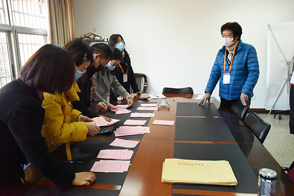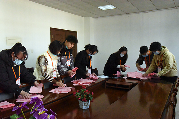 工作人员清点选票