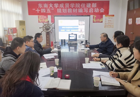郭正兴院长介绍了“十四五”规划教材建设背景和目标、編委会等情况,高度重视教材编写工作,强调教材编写要对标应用型大学一流专业建设要求,绿色建筑,智能化建造,确保高质量和有特色,鼓励大家利用好寒假时间高效率开展工作,同时对中国建筑工业出版社的鼎力支持表示感谢。