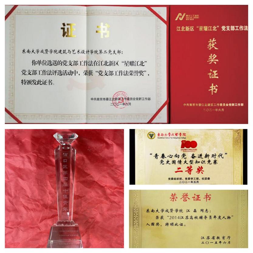 2019年本支部荣获东南大学先进基层党组织称号,2020年支部书记江晶荣获“全国民办高校优秀辅导”称号,2021年获评南京市江北新区“星耀江北”党支部工作法,荣获东南大学最佳党日活动评比“二等奖”两次,日本中文av 最佳党日活动“一等奖”三次、“二等奖”一次。支部党员荣获国际级奖项1人次,国家级奖项47 人次,省市区级奖项15人次,校级奖项96人次,奖学金26人次,学生党员的平均绩点为3.82,最高绩点为4.27。